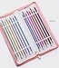 De breinaalden met knop in de KnitPro Zing Deluxe breinaaldenset zijn gemaakt van duurzaam en lichtgewicht aluminium. Met de scherpe en geleidelijk toelopende zilveren punten zijn deze naalden ideaal voor alle breiprojecten. De breinaalden liggen comfortabel en hebben een glad oppervlak, waardoor er snel en zonder weerstand gebreid kan worden. Bovendien heeft elke naalddikte een andere kleur, waardoor het eenvoudig is om de verschillende maten te identificeren. Deze set bestaat uit 8 paar breinaalden met knop van 40cm lang in de naalddiktes 2.50, 3.00, 3.50, 4.00, 4.50, 5.00, 5.50 en 6.00mm. De KnitPro Zing Deluxe breinaaldenset wordt geleverd in een mooi ritsetui van roze stof.